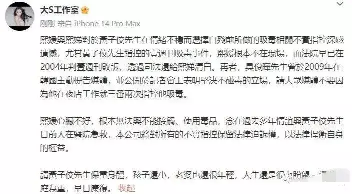 他指控大小S和具俊晔吸毒的言论激励了平凡柔软。
