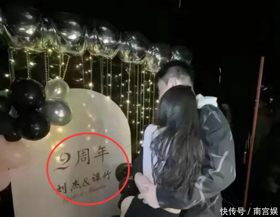 在这一组相片当中,照旧能够看出两个东谈主的关系十分亲密,胖猫主动把谭竹依偎在怀中,背后是写有“谭竹刘杰恋爱两周年记念日安闲”的字样。